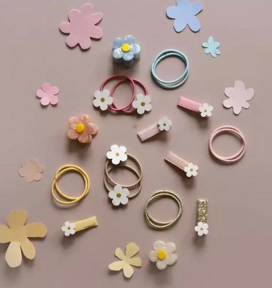 Une sélection pleine de douceur et de poésie : petits lapins, motifs fleuris et détails délicats. Barrettes, serre-têtes et accessoires cheveux viennent sublimer les coiffures des enfants avec une touche tendre et printanière.