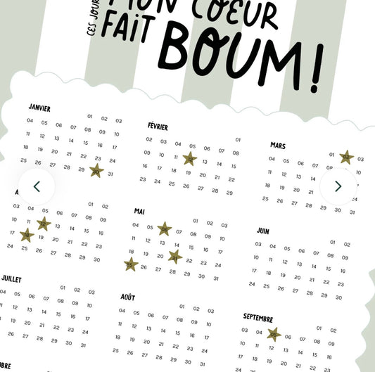 Calendrier mon coeur fait boom - rayures